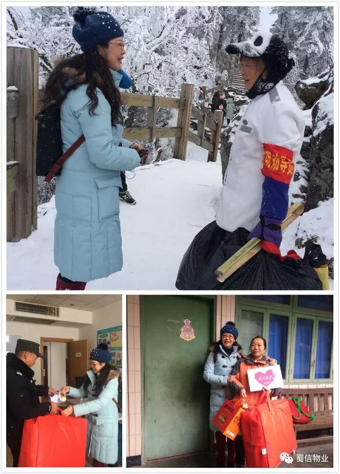 1月11日,早晨的西岭雪山景区内已是游客熙攘,公司人力资源部经理肖茜冒着严寒踏着厚厚的积雪前来慰问困难员工李玉清、牟志秀和孙文彬。肖经理代表公司向他们送上慰问金和物资,并与他们亲切交谈,详细询问他们的生活情况,了解实际困难,鼓励她们战胜困难,开心面对生活。 窗含西岭千秋雪,对其他人而言只是一副秀美的景致,而对于三位长期坚守在前线的大哥大姐来说,这里是他们的家,因家庭困难,维护景区秩序和环境卫生是他们耐以生存的工作。看着大哥大姐冻得通红的脸上挂着的朴实笑容,小宝想道一声:你们幸苦了!