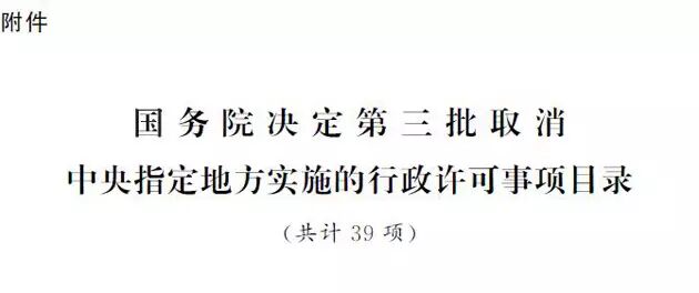 附件:国务院决定第三批取消中央指定地方实施的行政许可事项目录(共计39项)