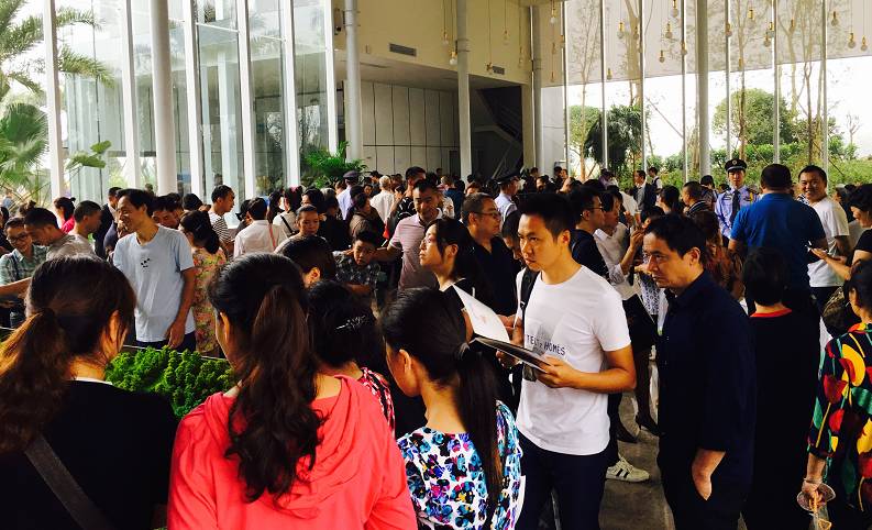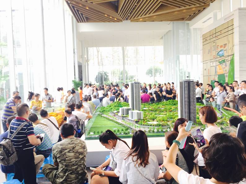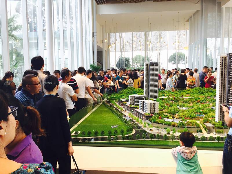 (现场人山人海,售楼部挤得水泄不通)