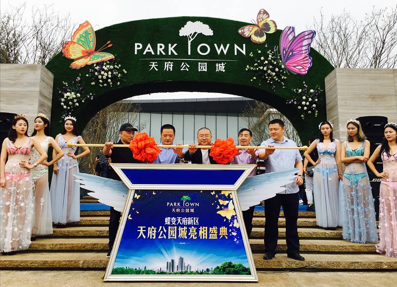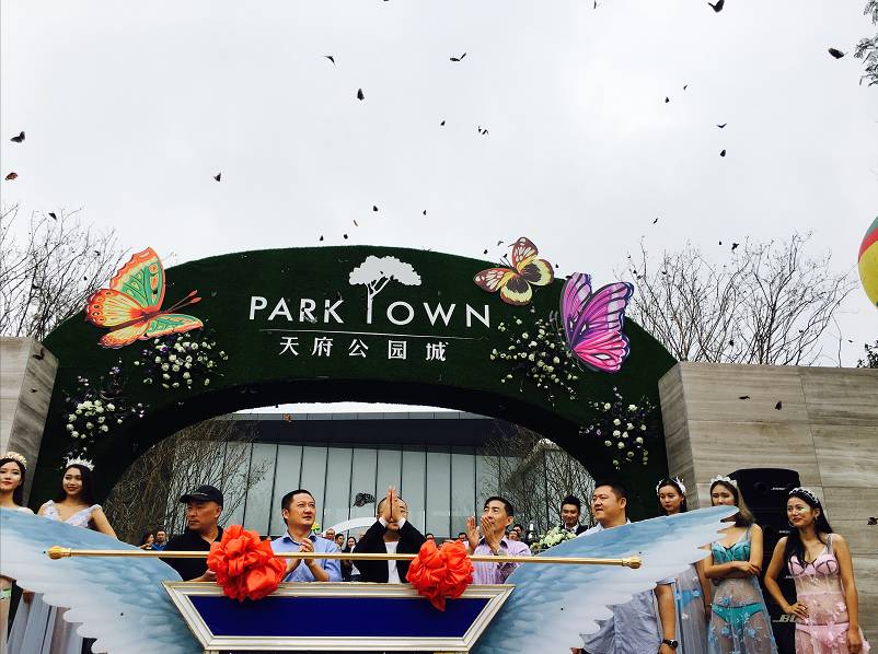 鲜花着锦,蝴蝶翩翩。五位领导一同推杆启动,蝴蝶翅膀翩翩扇动,寓意天府公园城展翅高飞,蝶变天府新区,同时也意味着生活体验馆正式开放!
