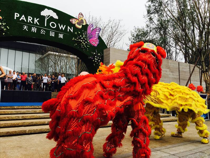 电子签到入场,生活体验馆外人潮涌动。签到仪式完成后,伴随着大气磅礴的舞狮表演,天府公园城生活体验馆亮相仪式正式开始。