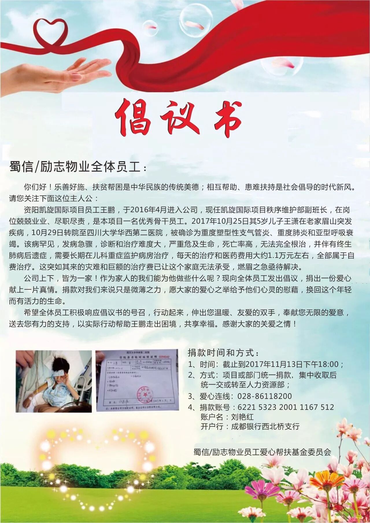 募捐倡议书让我们用爱心托起生命的希望希望大家奉献的一份爱心,共同为患者助力,衷心希望早日战胜病魔!