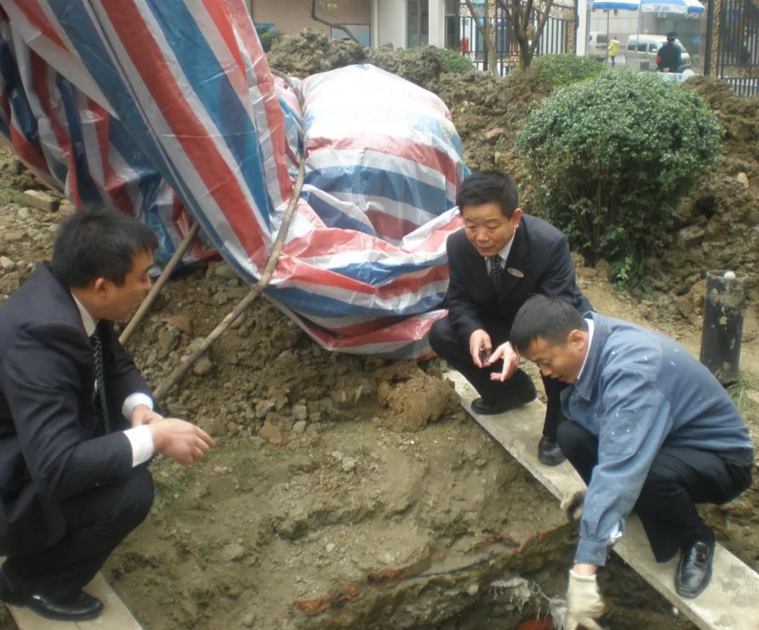 当老蔡还在为谊苑一期水管的顺利改造高兴的时候,谊苑二期的主排污管道发生了严重堵塞。受小区环境因素影响,无法采用机械施工,老蔡只有带着团队用双手一点一点地挖、一点一点地刨。