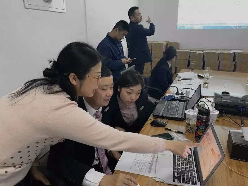 ▲肖经理(左一)针对细节提出指导意见